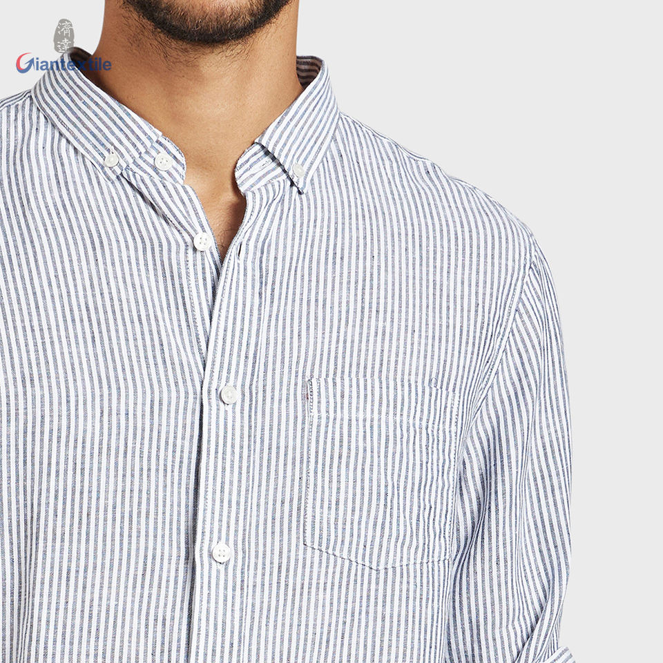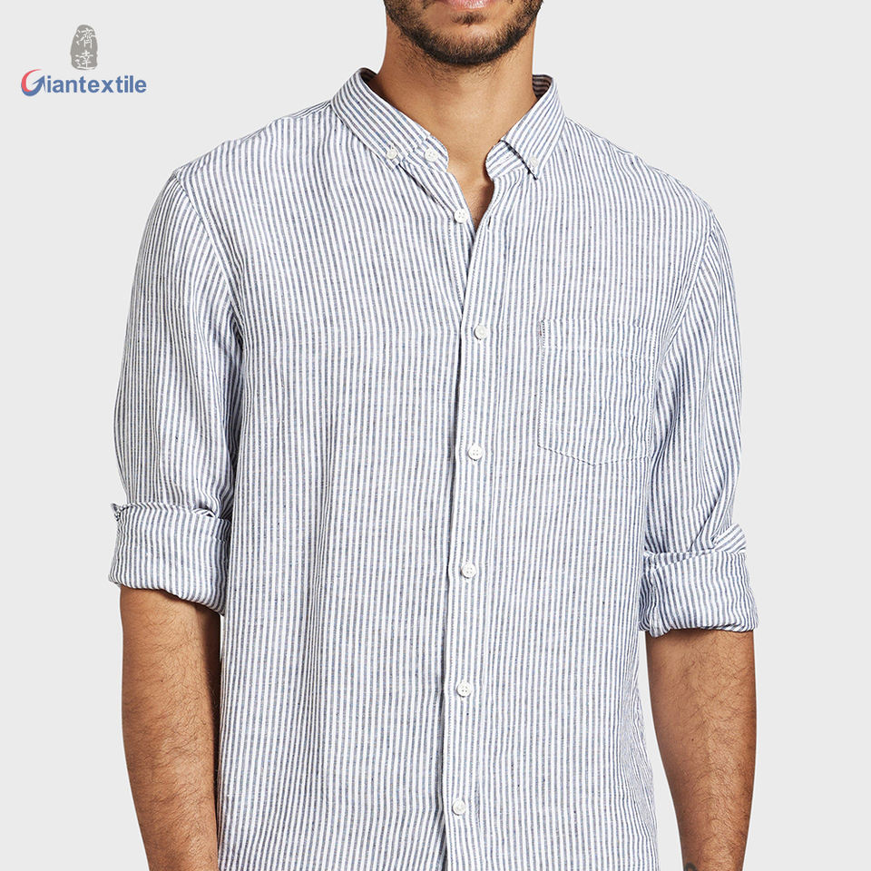 Camicia da uomo di alta qualità camicia 100% di lino blu e bianco a righe lunghe camicia classica per gli uomini