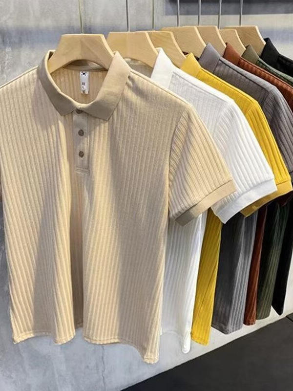 Polo da Uomo a Maniche Corte di Alta Qualità, Asciugatura Rapida, Stampa a Righe con Decorazione a Bottoni, Tessuto di Qualità e Seta, Taglia XL
