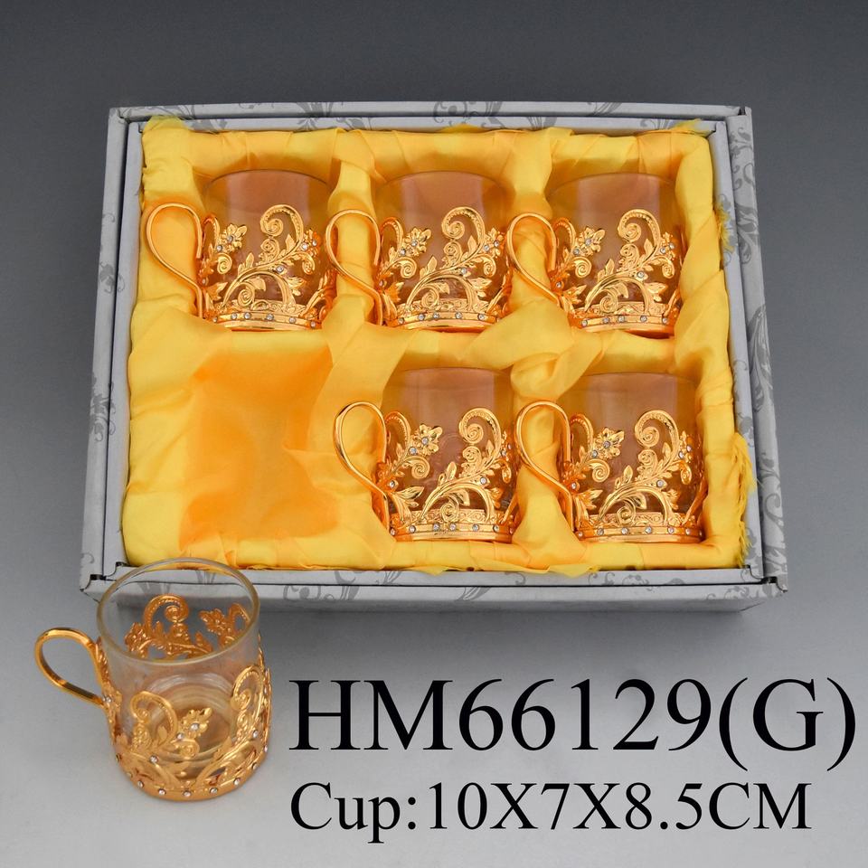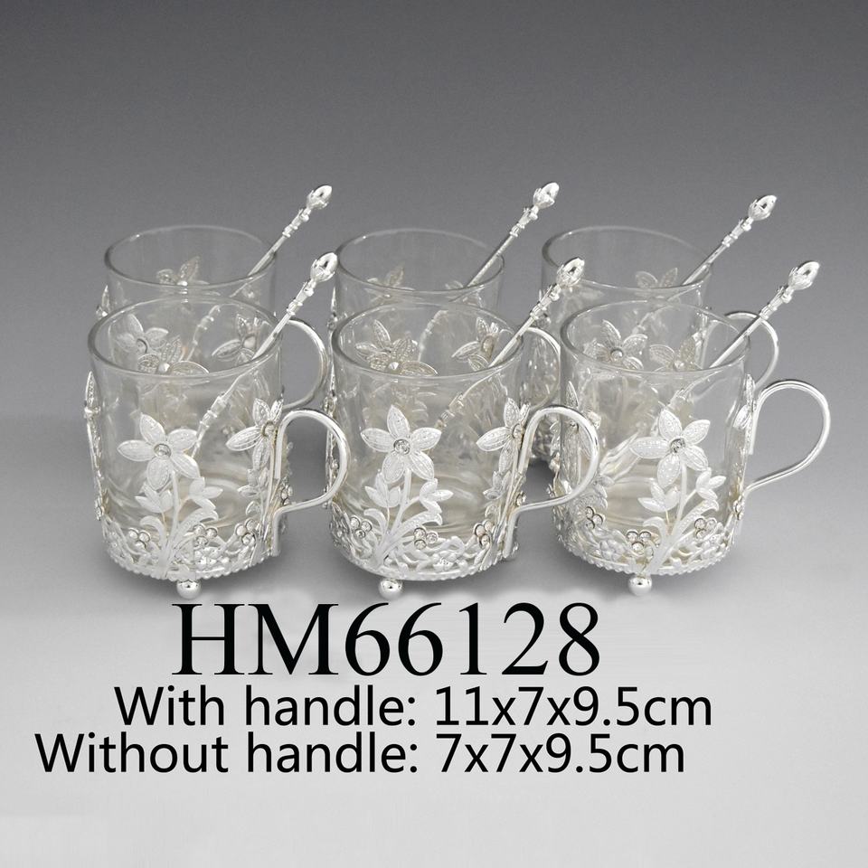 Metallo di alta qualità di tè tazza di caffè set di sei tazza con cucchiai di Ramadan regali piattino