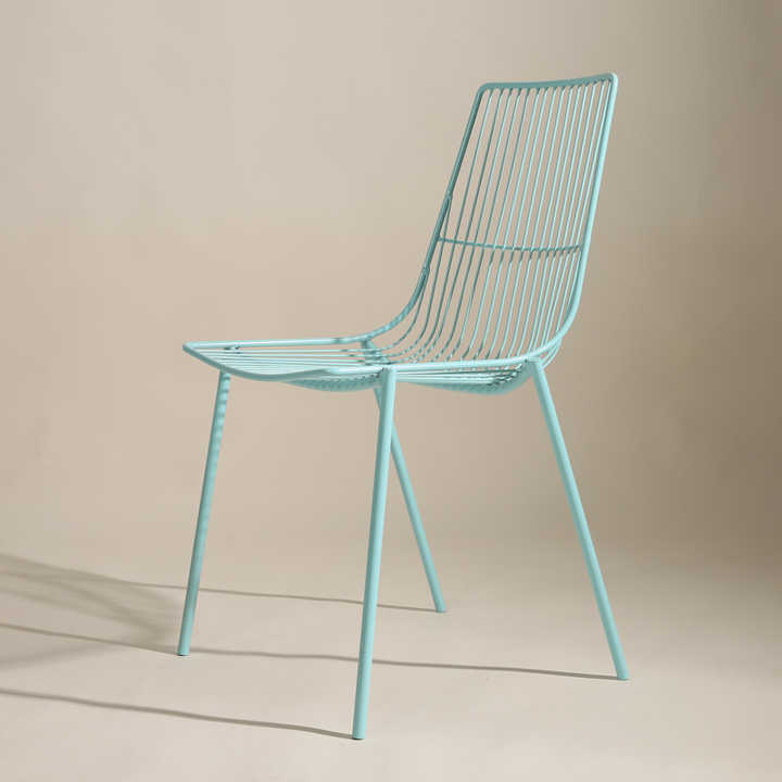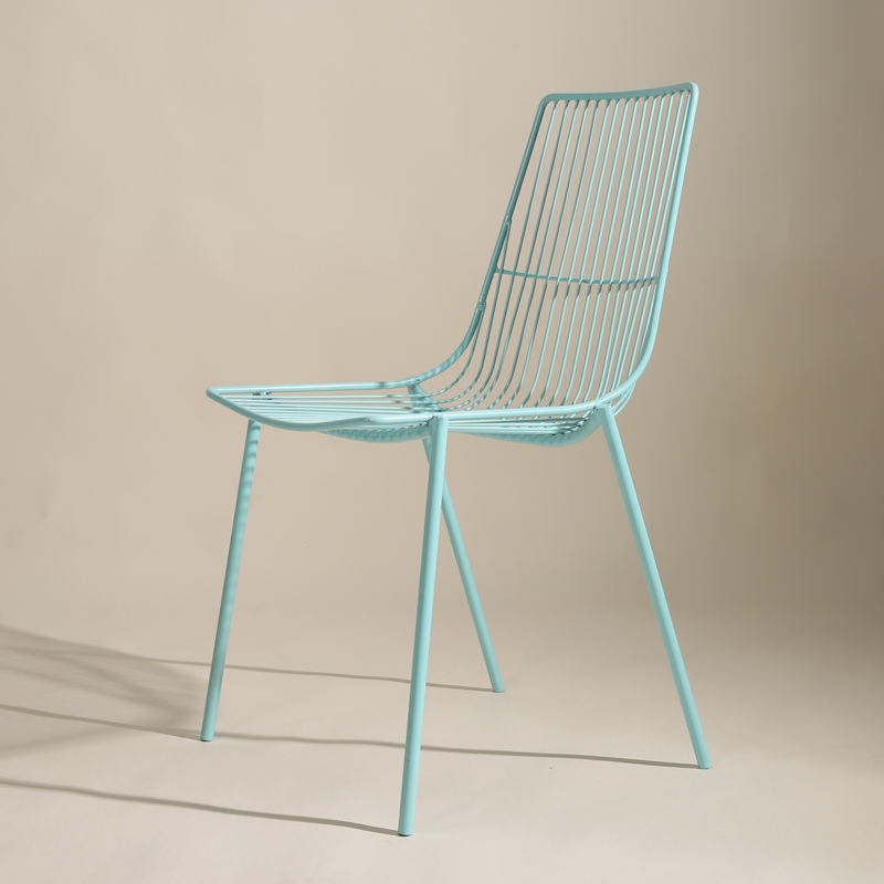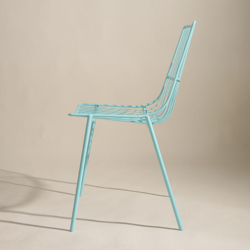 Sedia moderna per il tempo libero di alta qualità colorata blu rosa in rete di ferro sedia da pranzo