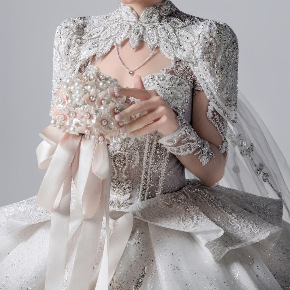 Parole chiave:Abito da sposa formale da donna, modello a sbuffo.