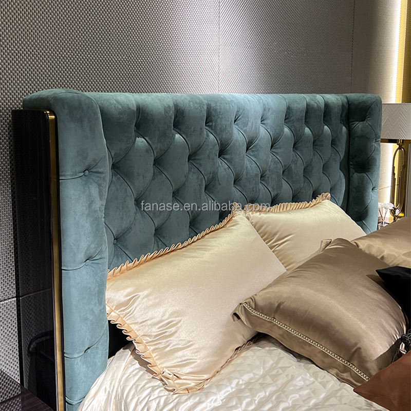 High Quality Modern Luxury Velvet Fabric High Heads Wooden Frame King Queen Size Bed With Storage Box Furniture Cheap Beds