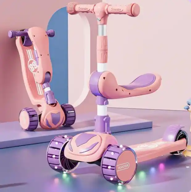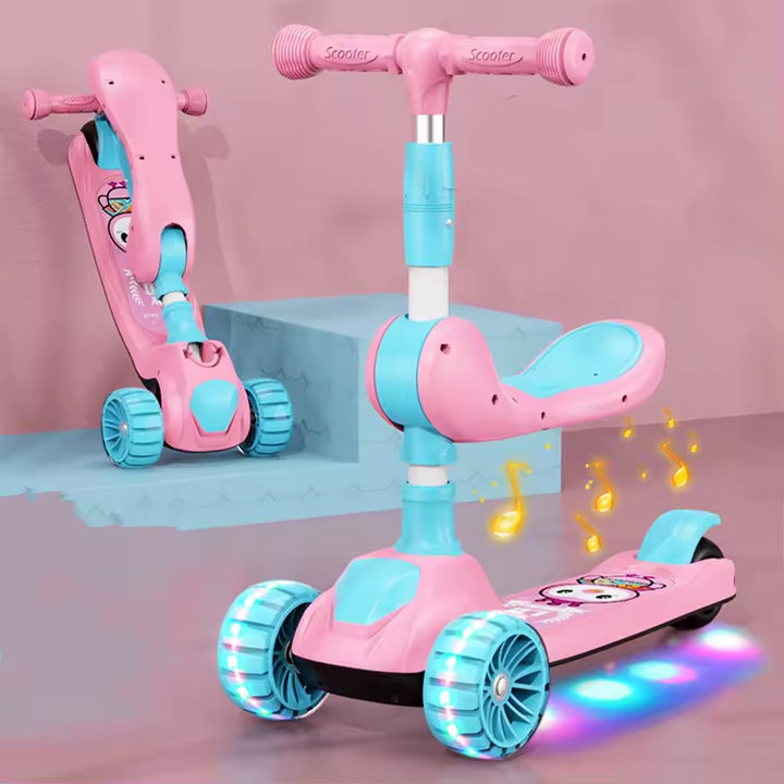 Di alta qualità Multi-funzionale bambini Kick Scooter a pedale per bambini 3 in 1 PU tre ruote Scooter elettrico bambino 2 Kg 60 Kg