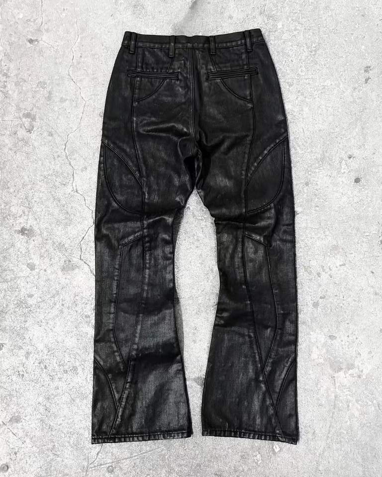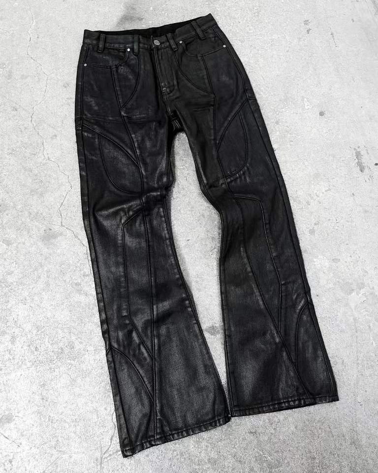Jeans da Uomo di Alta Qualità con Multipli Cuciture Cerate Vestibilità Regolare Stile Street Hip Hop Slim Jeans Hommes Nero Lavato Jeans a Zampa per Uomo