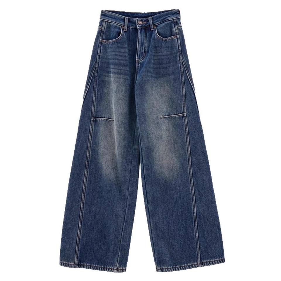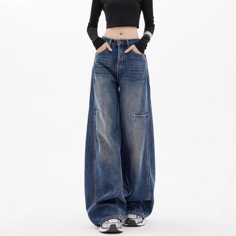 High Quality OEM Double Waist Baggy Women Wide Leg Denim Jeans Stacked Design Washed Patchwork Utility Y2K High Street Quick Dry