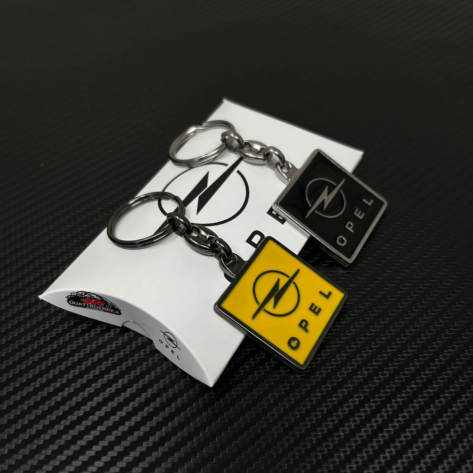 Portachiavi Auto Opel di Alta Qualità, Giallo, in Metallo, Design a 2 Pulsanti, 90 x 35 mm, Stile Business, con Anello Protettivo, Modello Adatto