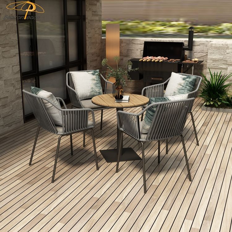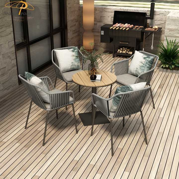 High Quality Outdoor Aluminium Table and Chair Set Guanzhou Supplier Round Restaurant Dining Tables Sets for Hotel