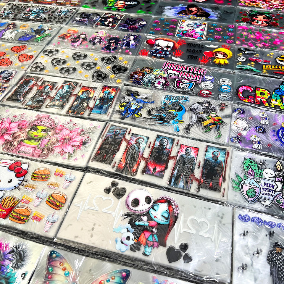 Etichette Adesive DTF UV in PET di Alta Qualità, Basso MOQ, Impermeabili per Bicchieri e Bottiglie, Realizzate in Plastisol per Stampa a Trasferimento