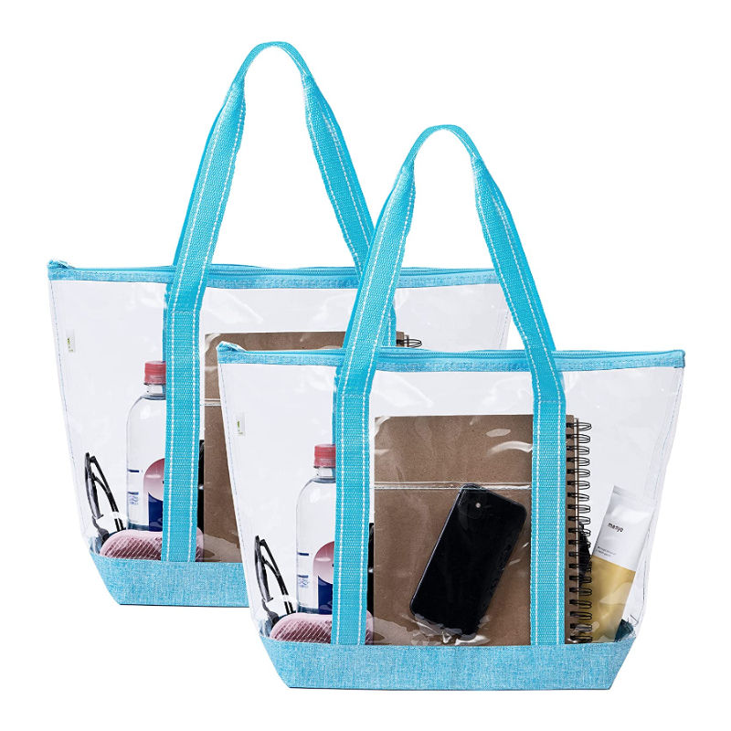 High Quality PVC Clear Tote Handbags for Women Stripe Canvas Multiple Pockets Outdoor Purses Good Quality Shopping Bags