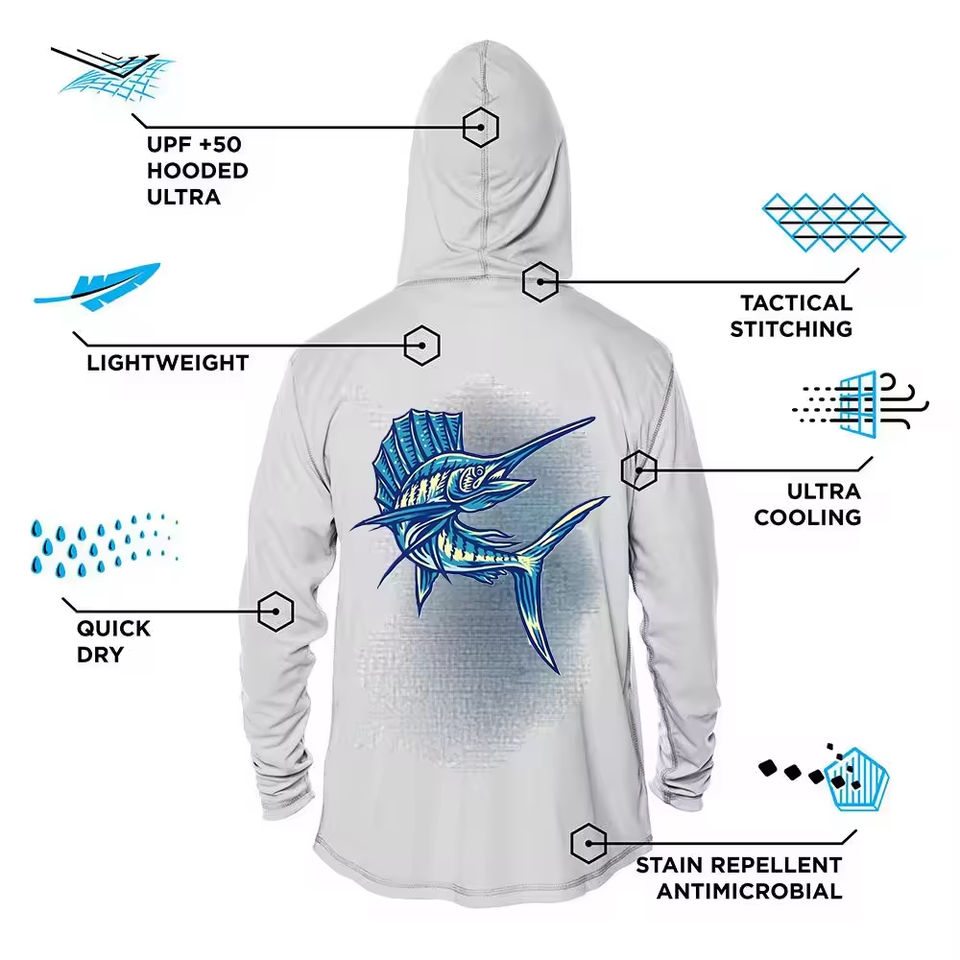 High Quality Performance Long Sleeve Hoodie Fishing Shirts, Custom Made Fishing Shirt, Upf Fishing Shirts for Mens