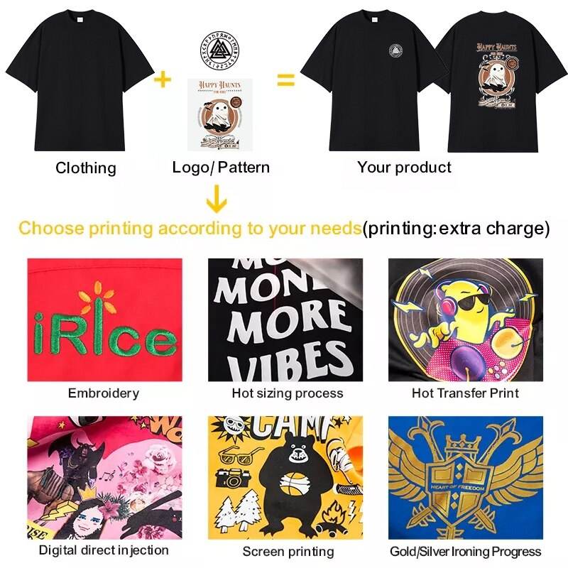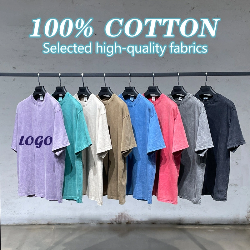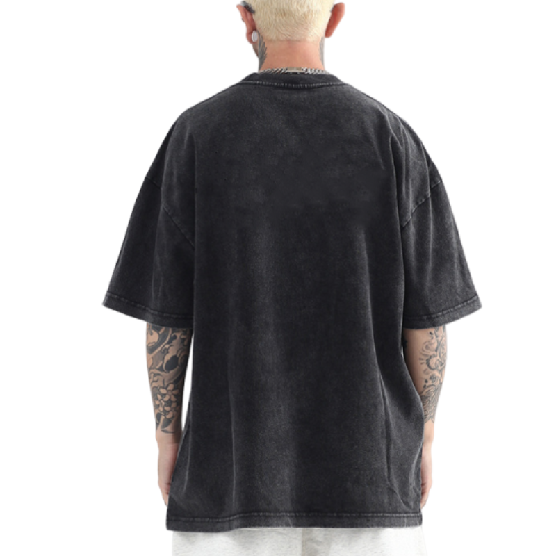 T-shirt da Uomo Nera Tinta Unita di Alta Qualità con Logo Personalizzato Tessuto Pesante Lavato Vestibilità Ampia Oversize Stile Hip Hop Manica Corta Unisex