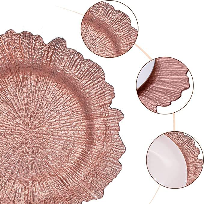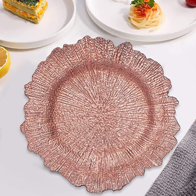 Piatti per caricabatterie di barriera corallina in plastica di alta qualità piatti per caricabatterie rotondi in spugna floreale decorazione per feste di matrimonio