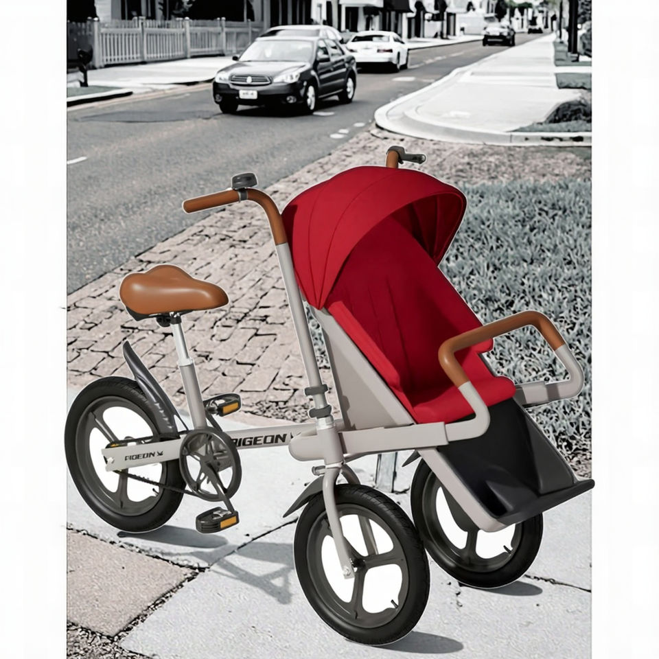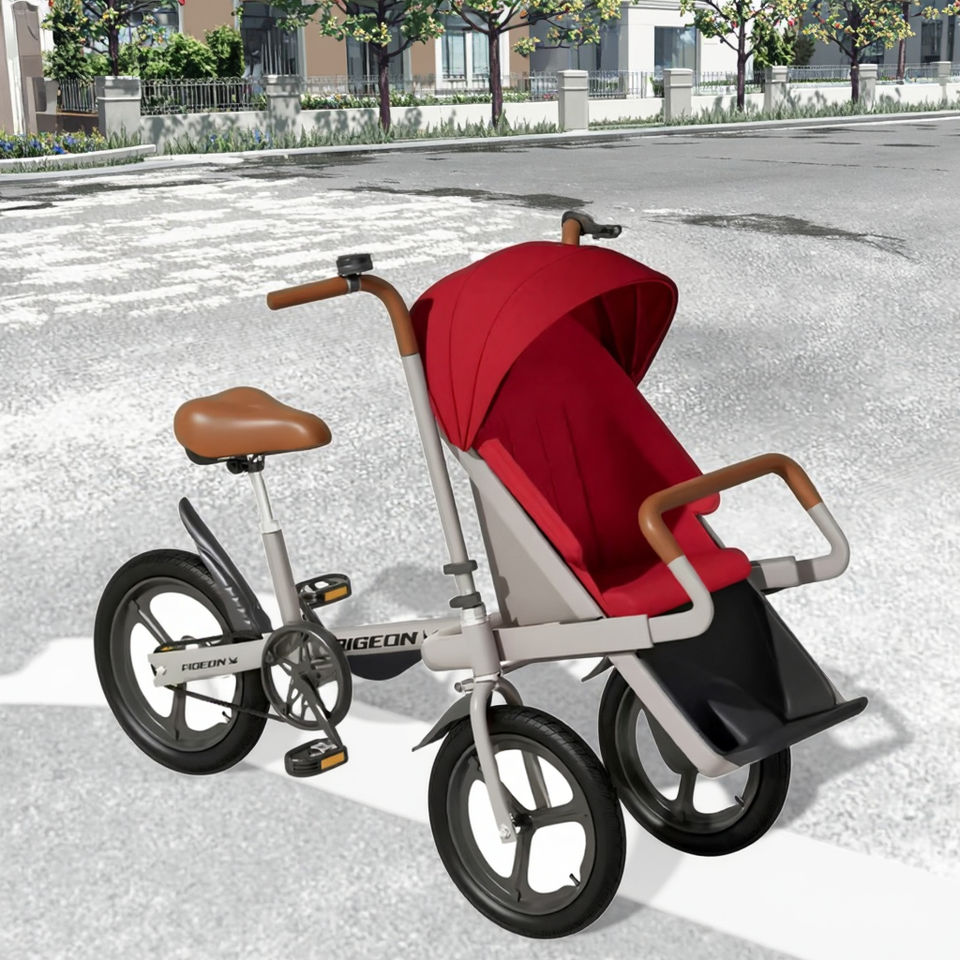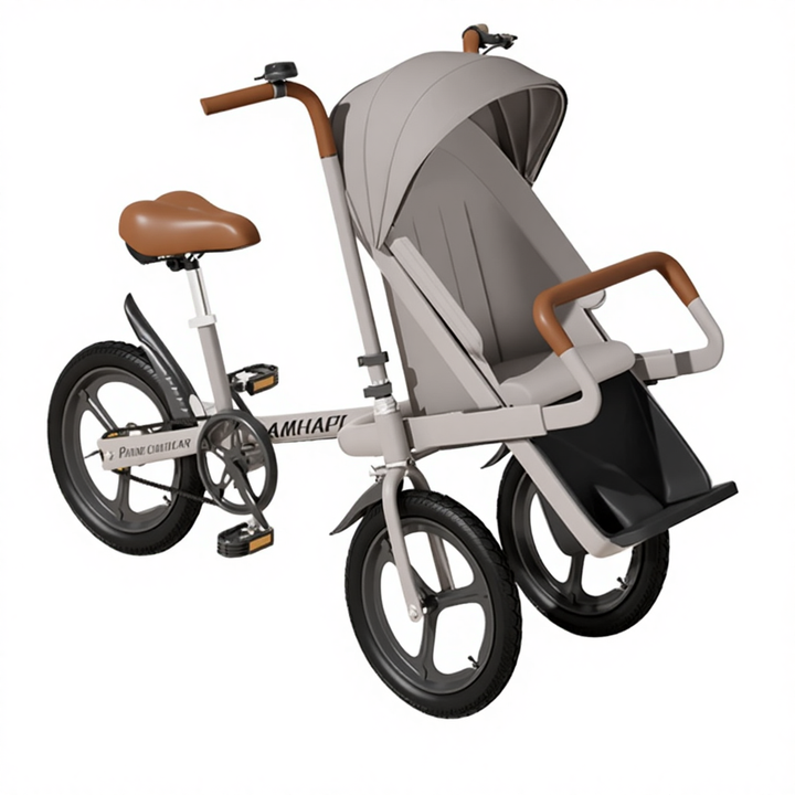 Passeggino a Tre Ruote Portatile di Alta Qualità per Bambini, Bicicletta Pieghevole per Genitori con Seduta Alta per Viaggi