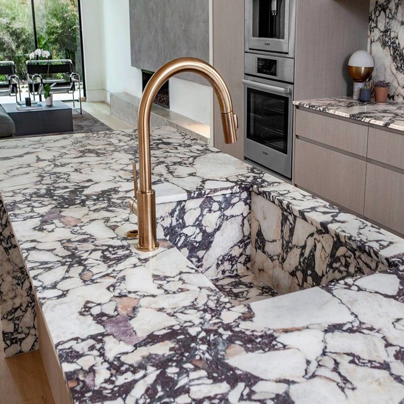 Name:Purple Veined Calacatta Viola Marble Sink Kitchen Falling Island Top