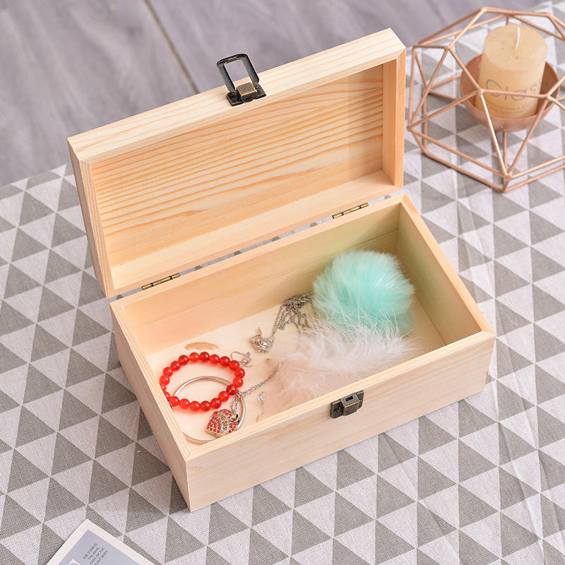 Scatola per gioielli in legno rettangolare di alta qualità Scatole portaoggetti con coperchio a ribalta in legno massiccio
