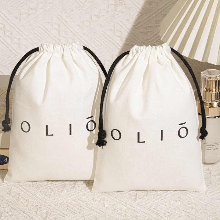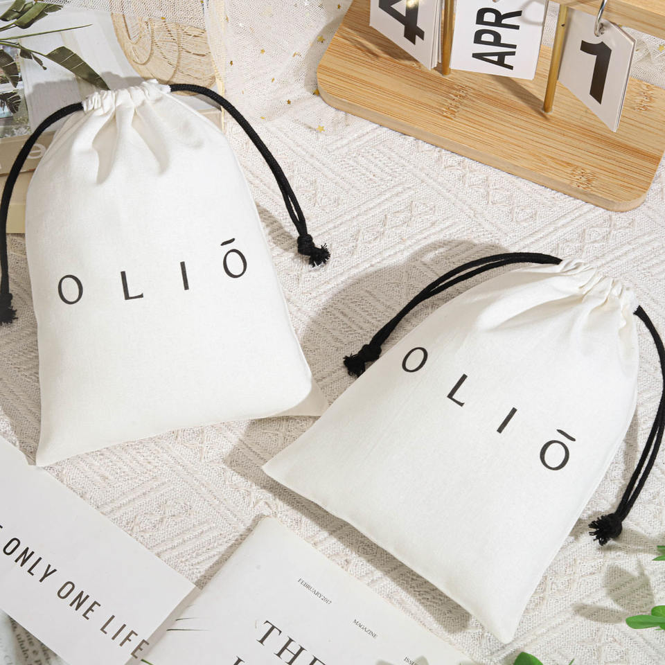 Borsa con coulisse in cotone riciclabile di alta qualità con logo personalizzato stampato per uso quotidiano per contenere regali