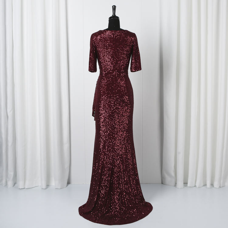 Di alta qualità rosso scollo a v abito da sera con paillettes delle donne maxi vestito in rilievo la madre della sposa si veste più il formato