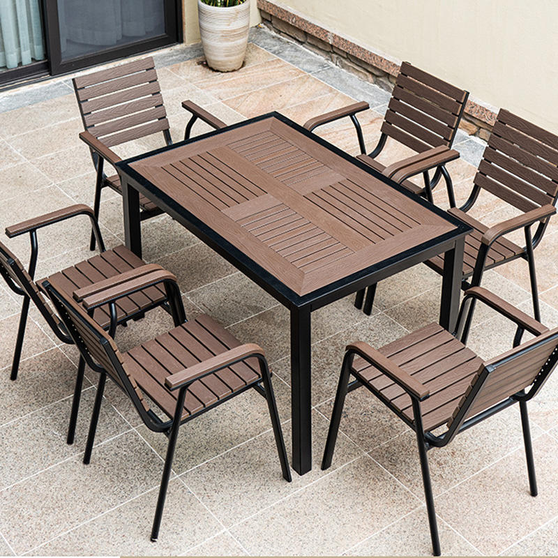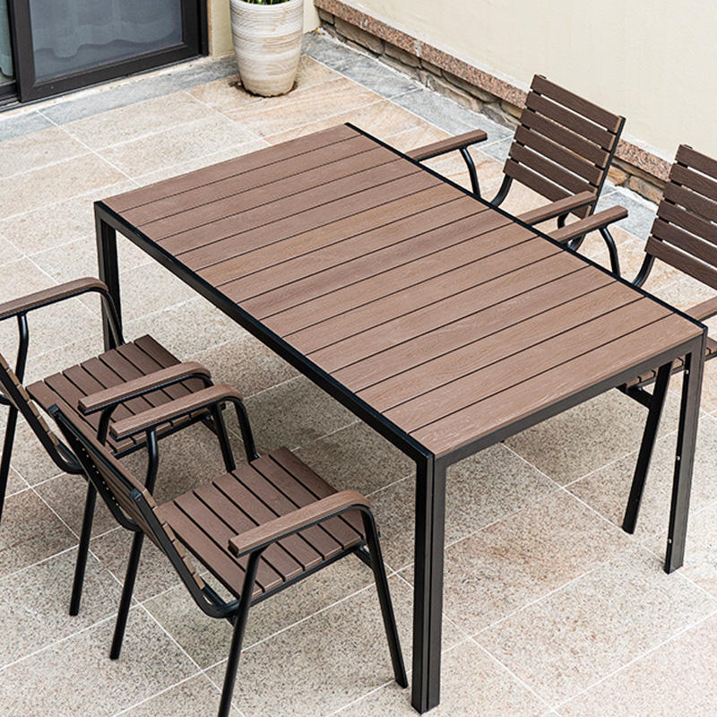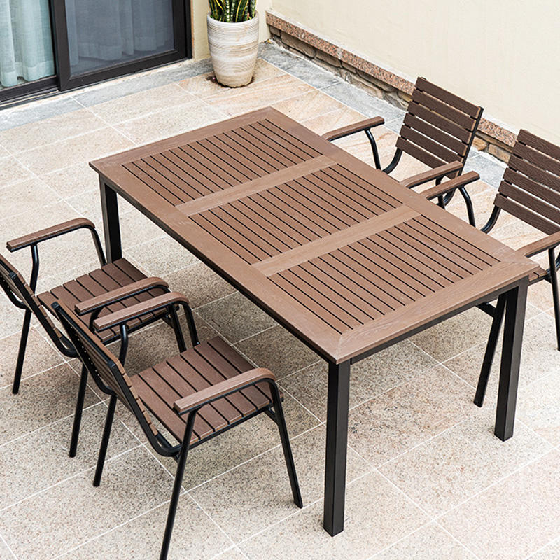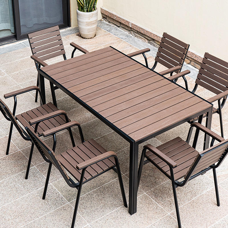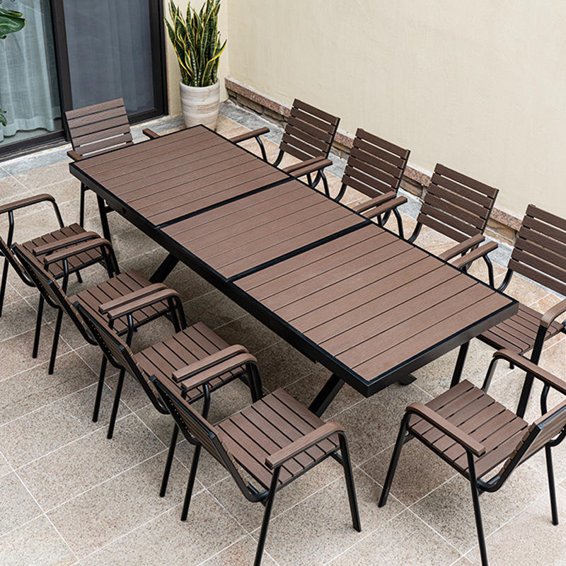 Set Tavolo e Sedie da Esterno Retrattile di Alta Qualità in Legno Plastico per 8 Persone, Impermeabile per Terrazza