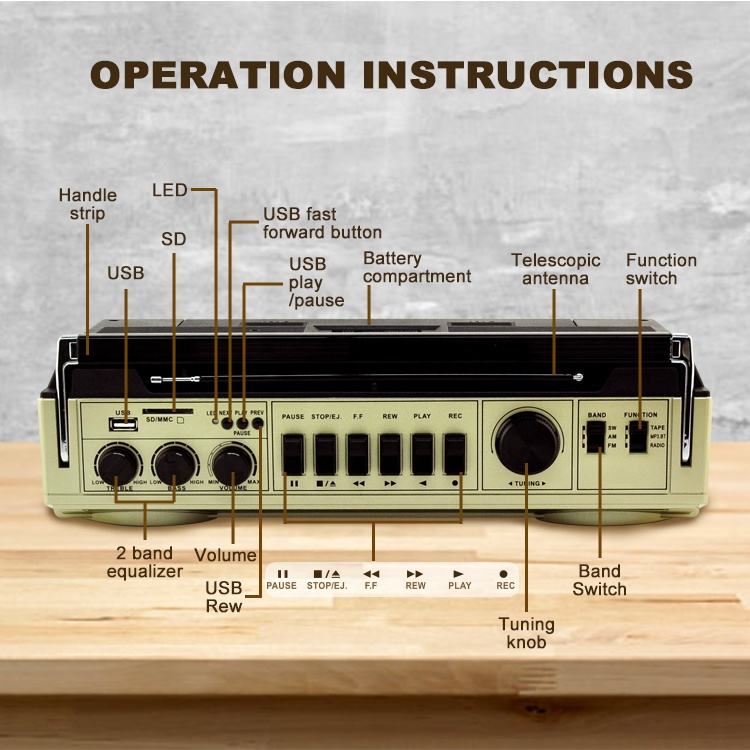 Alta qualità retrò Vintage vecchio Am Fm Sw Radio lettore di Cassette altoparlante cassetta Boombox