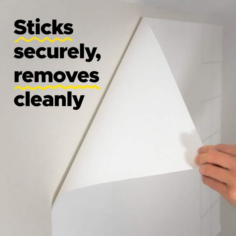 L'adesivo ultra rimovibile autoadesivo aderisce in modo sicuro alla maggior parte delle superfici.
