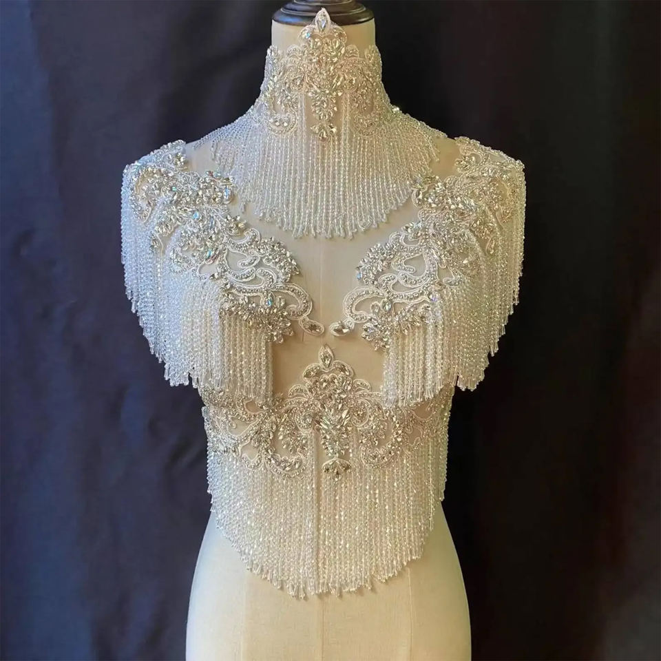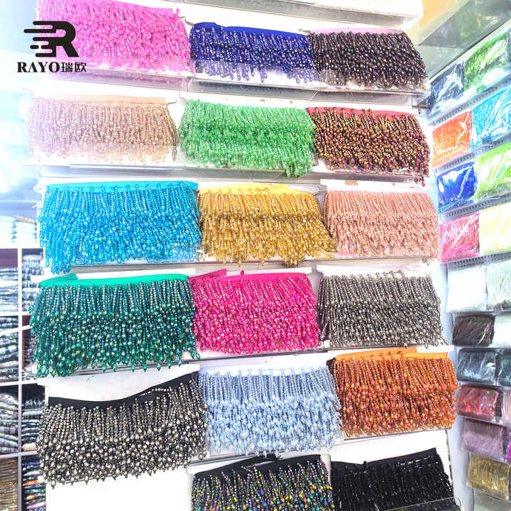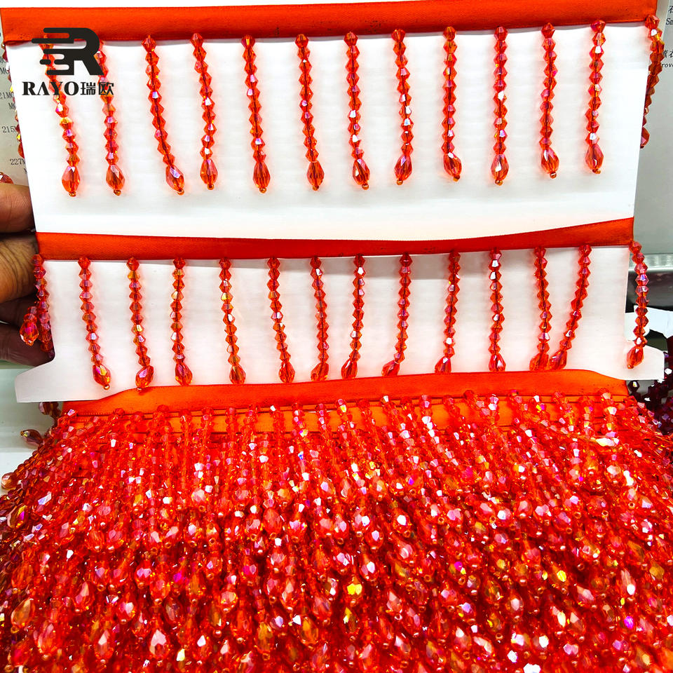 Nappina con Perline di Strass di Alta Qualità 5.5CM 9 Colori Frangia in Pizzo con Perline di Cristallo per Decorazione di Abiti