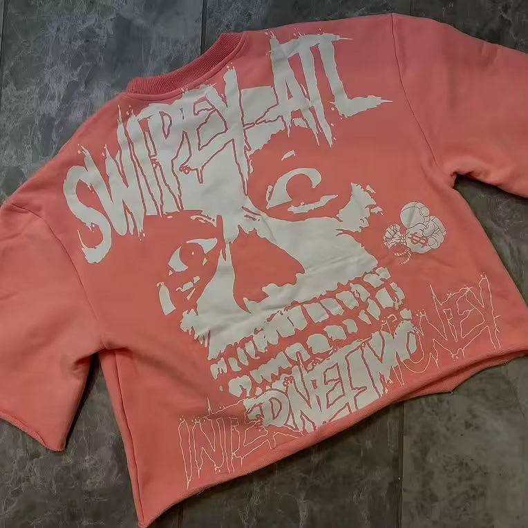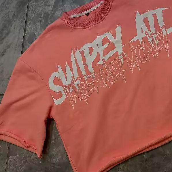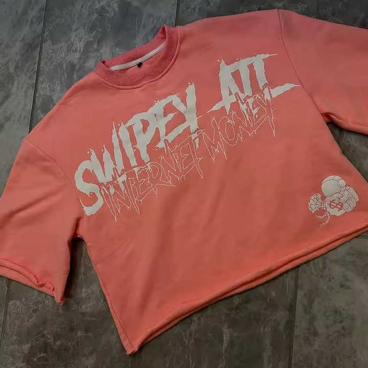 T-shirt Crop da Uomo Senza Cuciture a Spalla Cadente di Alta Qualità, 300GSM, Cotone Bianco, Stampa Grafica Personalizzata, Vestibilità Ampia e Robusta
