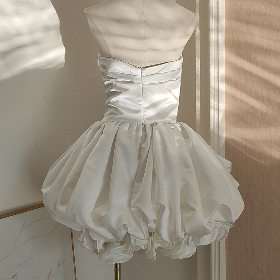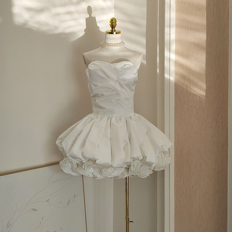 High Quality Sexy Strapless Flower Dress Fluffy White Dress Exquisite Women's Clothing Wholesale