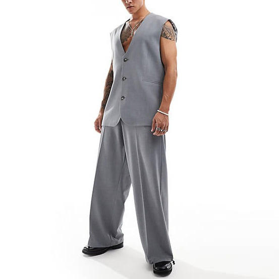 Giacca da uomo con scollo a V con 3 bottoni e palangari rilassata senza maniche
