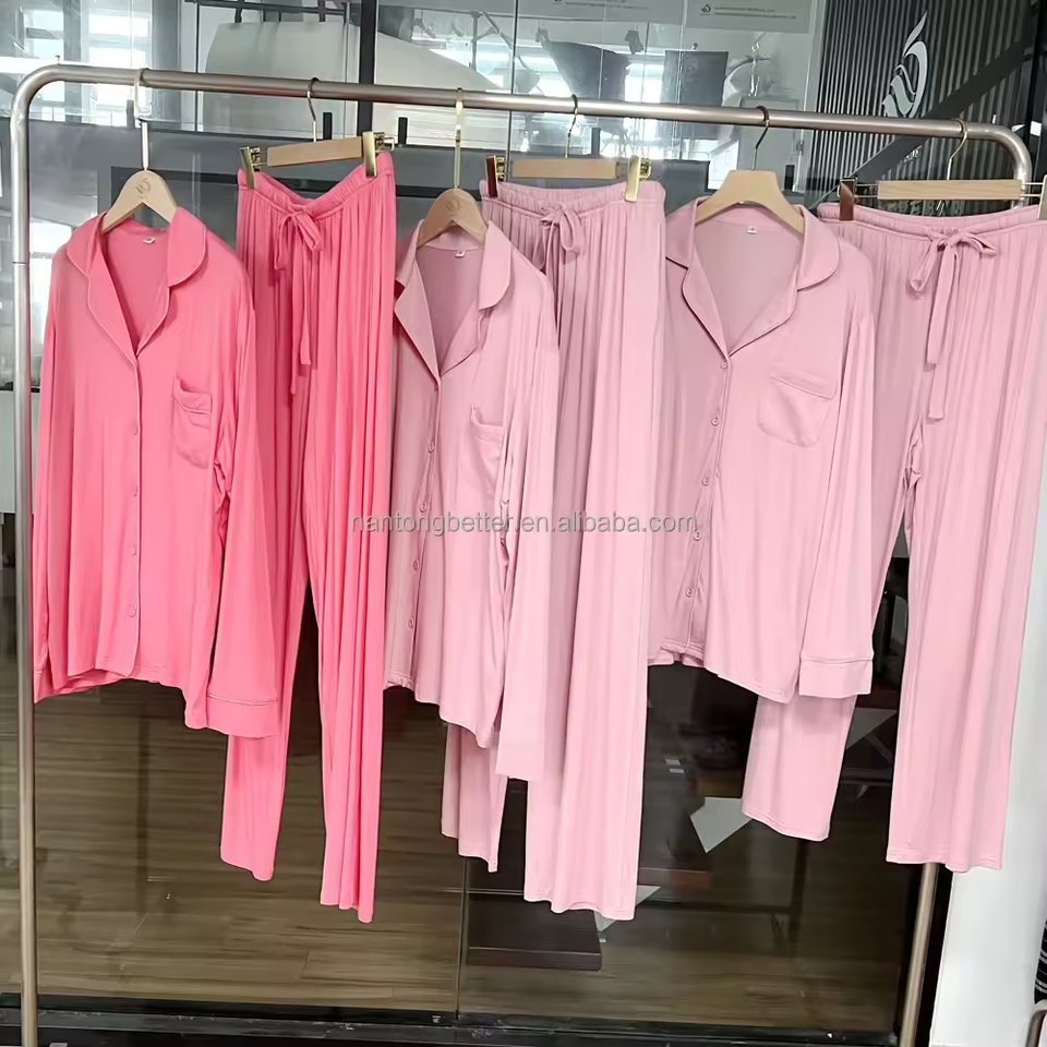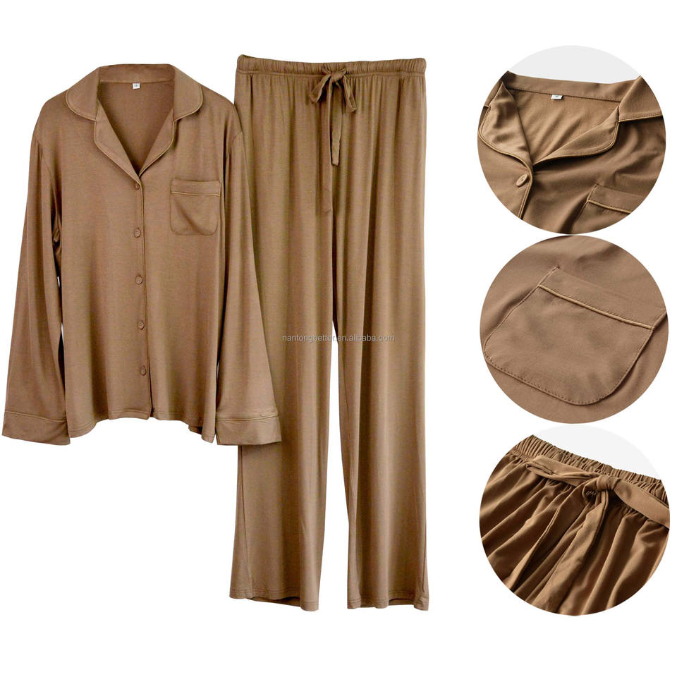 High Quality Soft Breathable Women's Modal Bamboo Long Pajamas With Drawstring Viscose Rayon Womens Sleepwear PJ Sets for Women