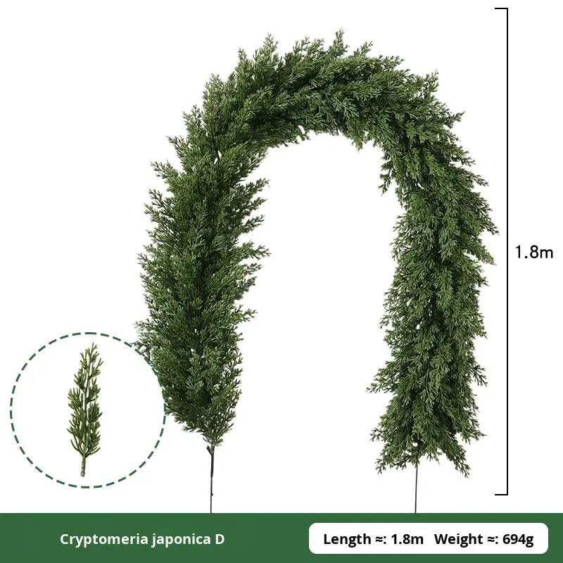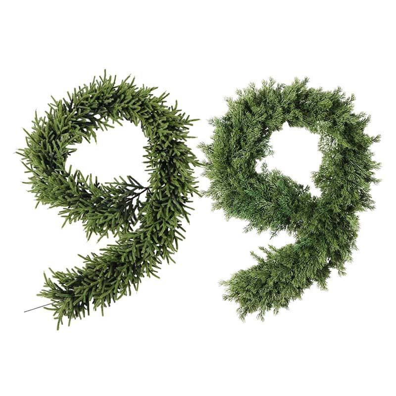 Ghirlanda Natalizia in PVC di Alta Qualità Morbida al Tatto con Rattan, Aghi di Pino e Cipresso, Foglie Verdi Artificiali per Decorazione Porta