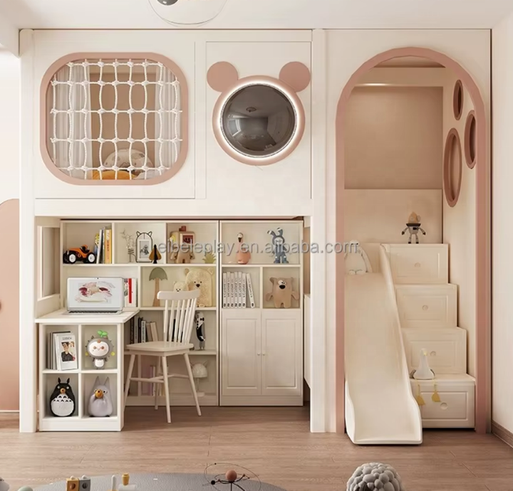 Di alta qualità in legno massello letti a castello doppio letto a soppalco con scrivania del computer sotto e libro di stoccaggio per bambini camera da letto