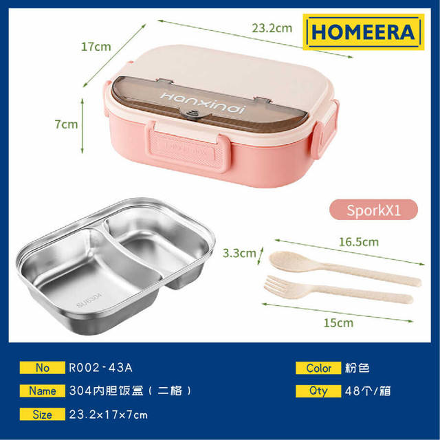 Alta qualità in acciaio inox giapponese Bento Box rosa PP eco-friendly Design durevole per la conservazione degli alimenti per il lavoro 232x17x7cm