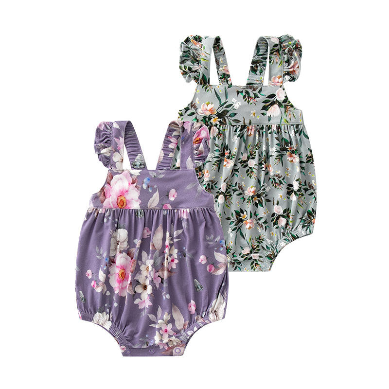 High Quality Stock Summer 0 to 3 Months Bamboo Ruffle Newborn Baby Girls Floral Singlet Rompers Dress Jumpsuit