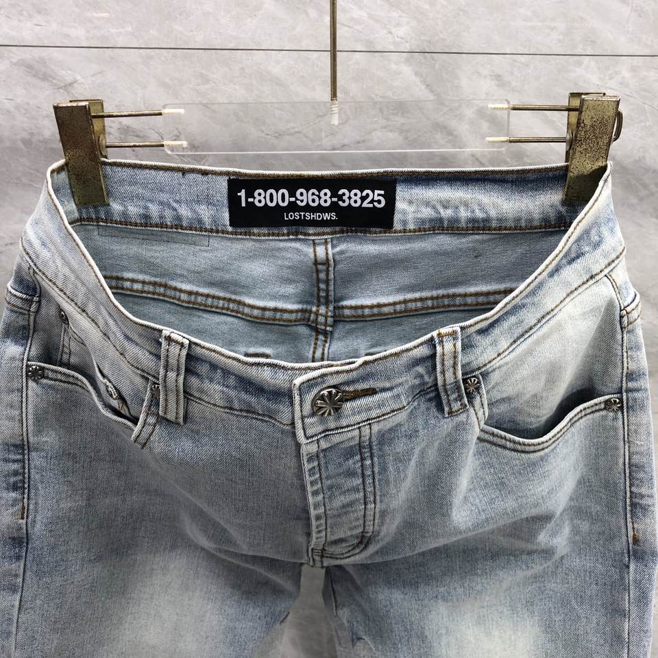 Pantaloni da uomo di design dritto di alta qualità impilati Skinny Slim Fit in Denim Black Tag consumed Wash Jeans da uomo smarriti