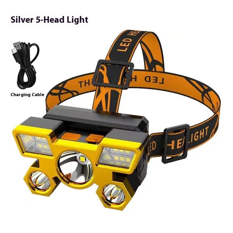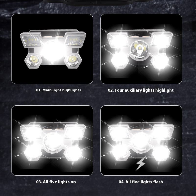 Lampada Frontale di Alta Qualità, Luce Potente, Lunga Durata della Batteria, Ricaricabile, con Cinque Teste, Lampada da Miniera per Esterni