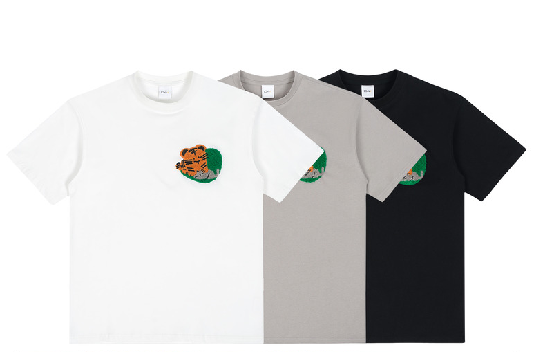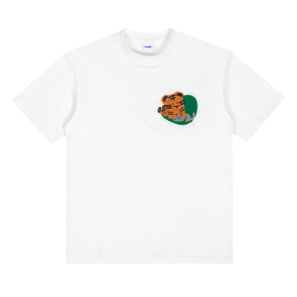 Magliette da uomo ricamate taglie forti in cotone tigre con stampa a sbuffo 3D di alta qualità estiva di alta qualità
