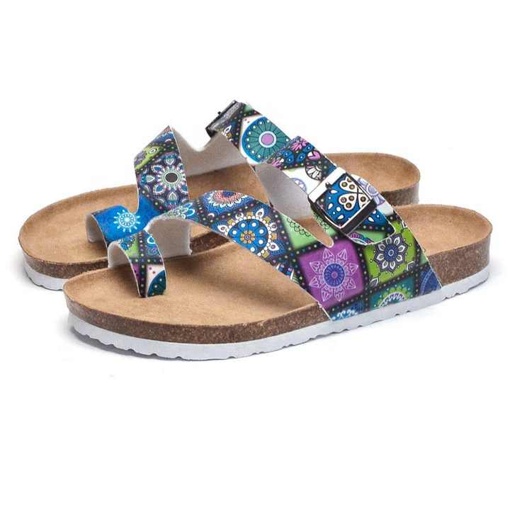 Infradito estivo a punta aperta da spiaggia di alta qualità alla moda sandali Casual da donna con fibbia con stampa superiore per ragazze pantofole piatte