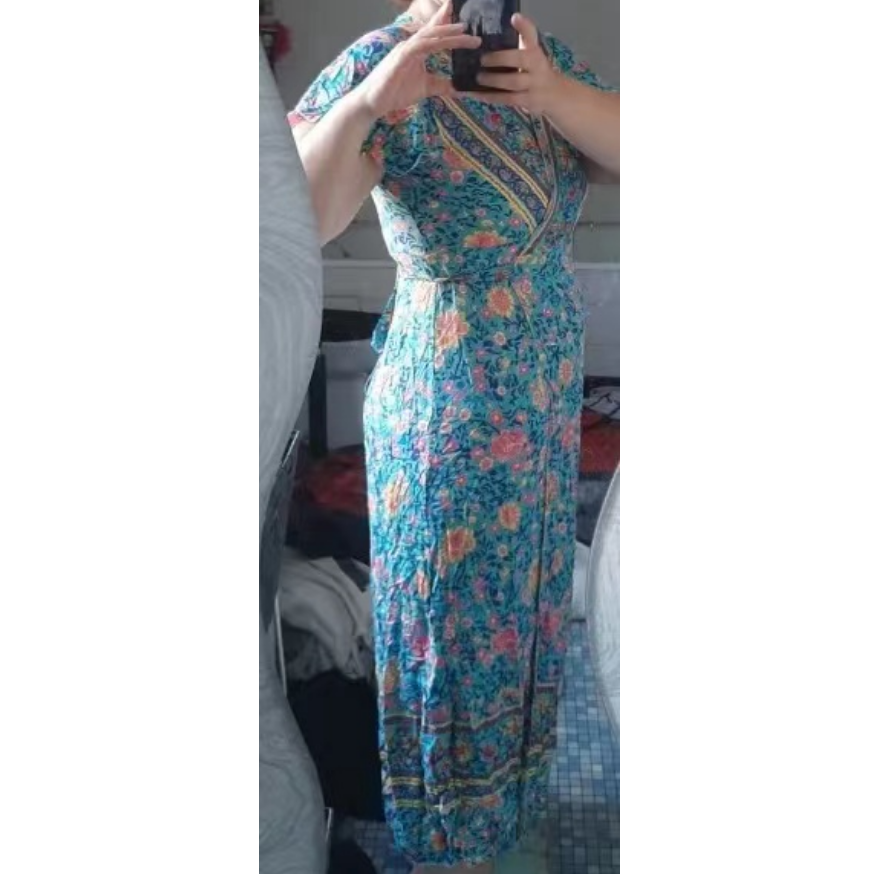 High Quality Summer Women Sky Blue V Neck Beach Resort Floral Printed Maxi Dress Bohemian Wrap Split Maxi Party Dress