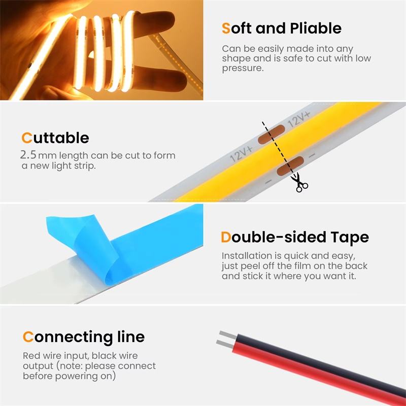 Strisce LED COB Flessibili ad Alta Densità e Super Luminose di Alta Qualità 24V per Profili da Controsoffitto 12V 8mm 320LED Luce a Striscia LED COB