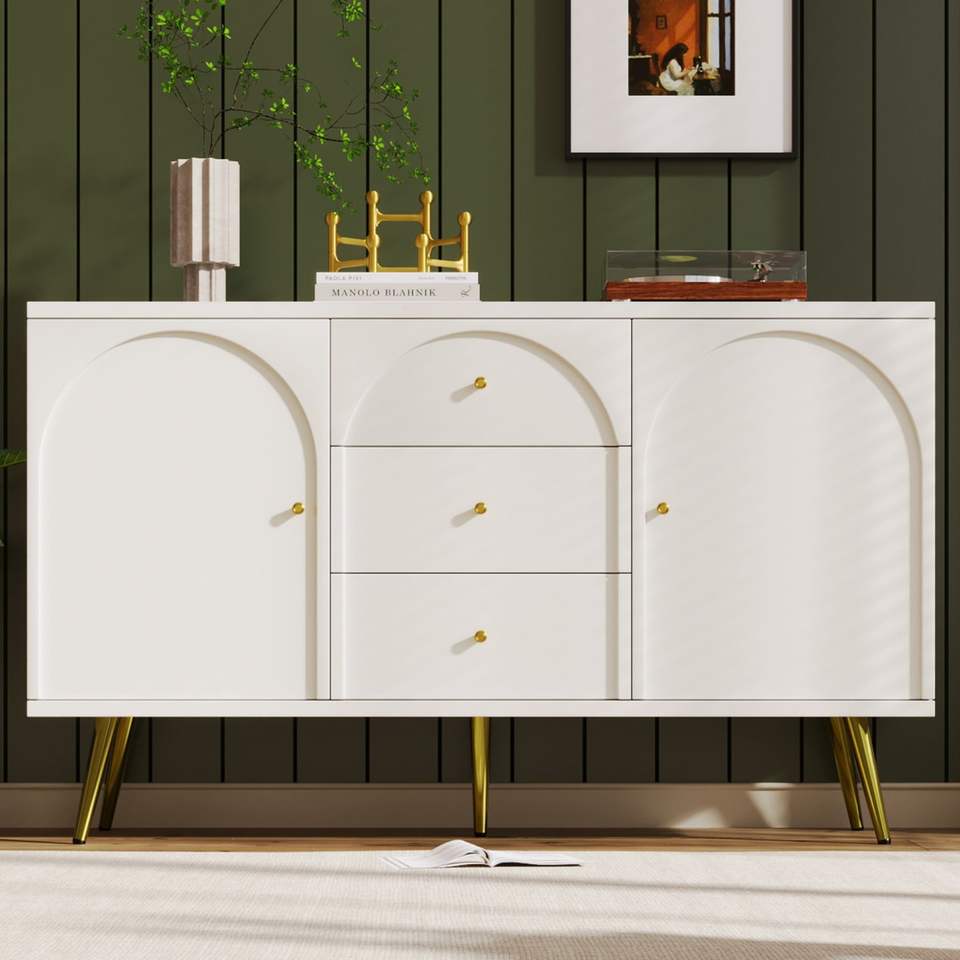 Armadio da pranzo in metallo a due ante a tre cassetti di alta qualità con finitura in legno semplice stile di stoccaggio multifunzionale per salotti