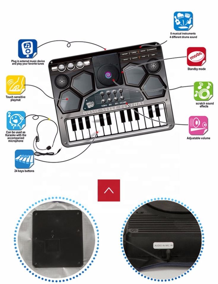 Strumento musicale giocattolo di alta qualità per tastiera per bambini a percussione set di tamburi per giochi musicali per bambini con tappetini per pianoforte ecologici
