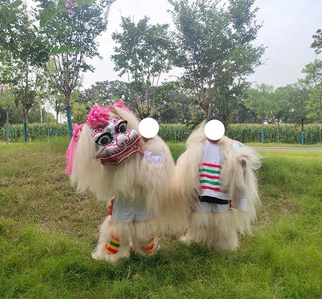 High Quality Traditional Little White Lion Smiling Lion Cow Yak Hair Two Person Lion Dance Single Art New Year Adult Performance