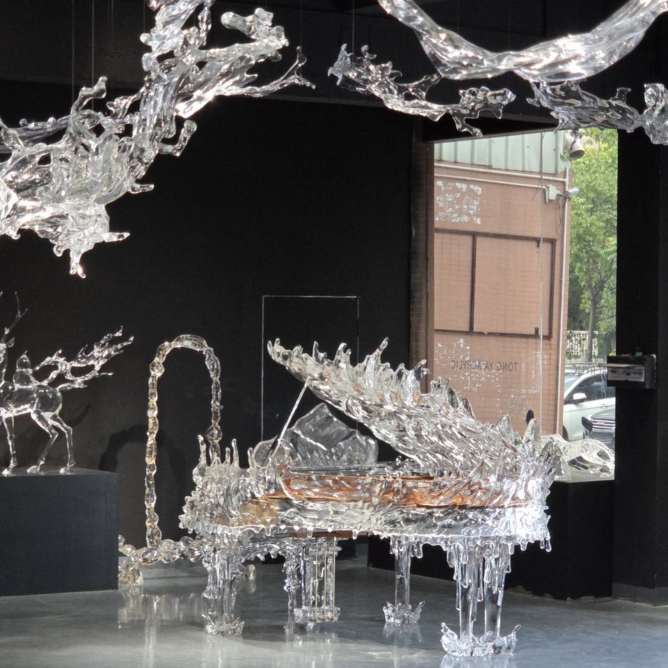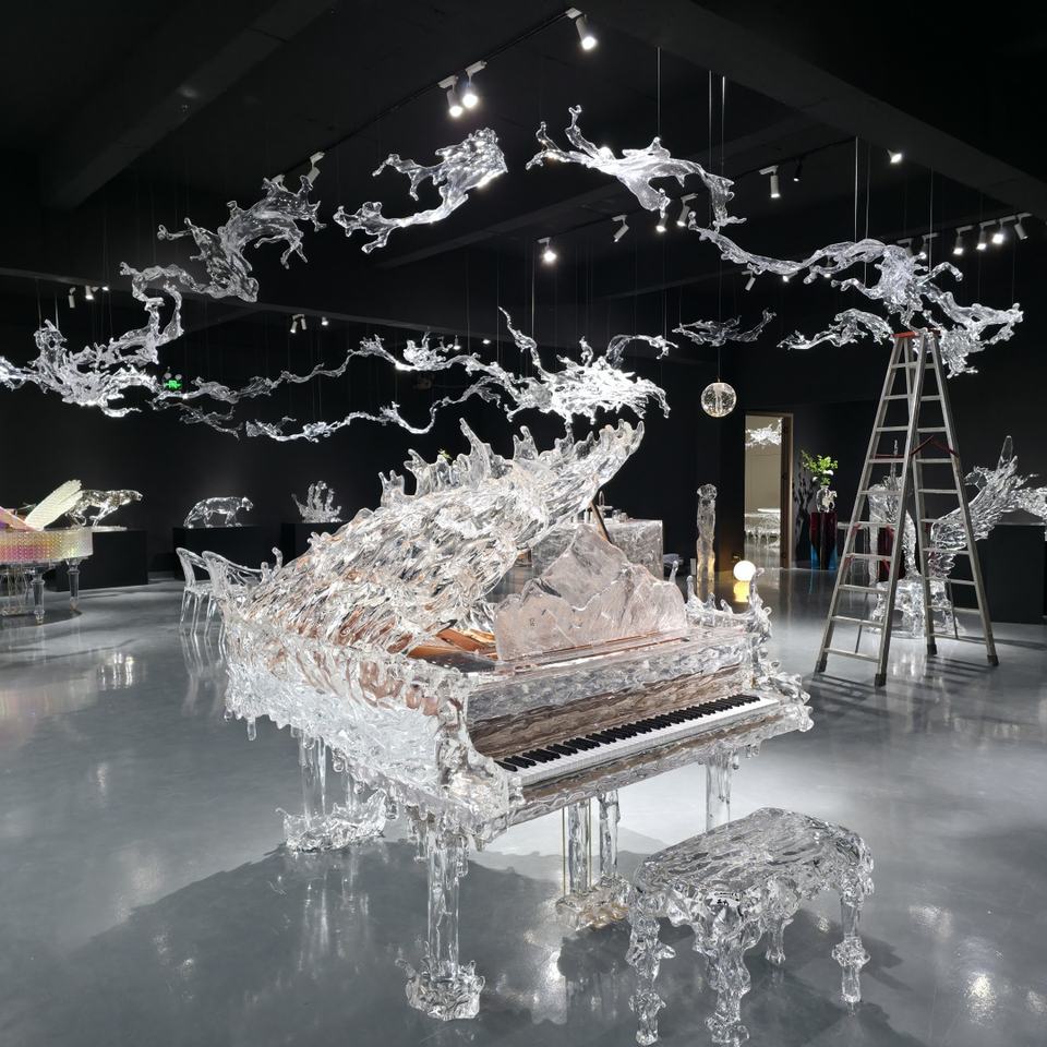 Pianoforte a Coda in Cristallo Trasparente di Alta Qualità, Strumento Musicale Fushun Stream Design con Sistema di Riproduzione Automatica Opzionale