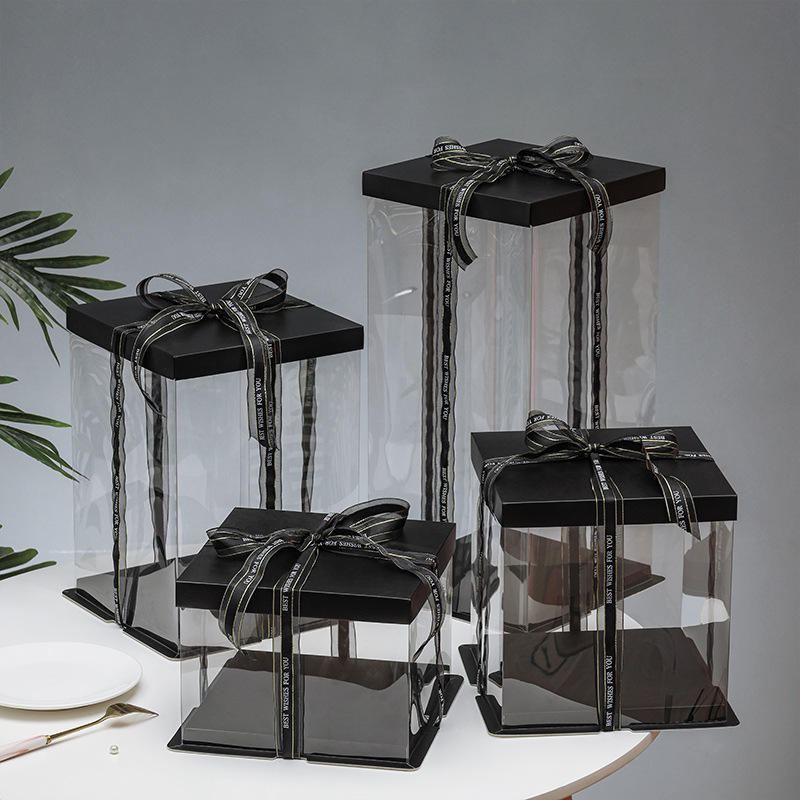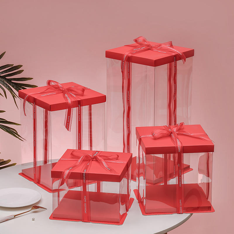 Scatola per torta di carta trasparente di alta qualità 4/6/8/10/12 pollici all'ingrosso per torta di compleanno e prodotti regalo di imballaggio e stampa