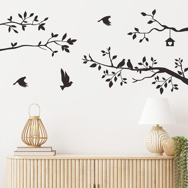 High Quality Tree and Birds Large Printing Vinyl Wall Stickers Decoration for Home Decor