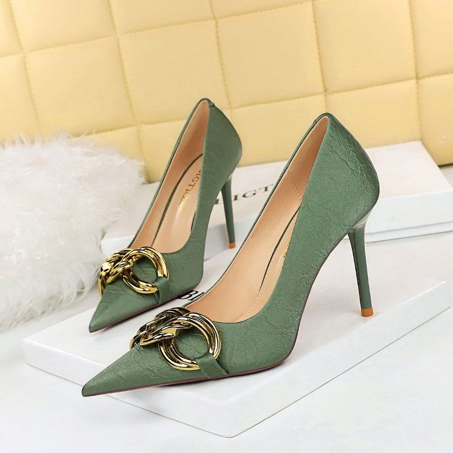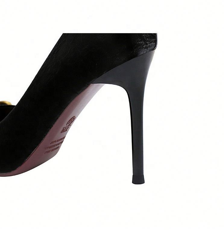 Scarpe con Tacco Alto di Alta Qualità alla Moda e Sexy 9,5 CM per Donne Slip-On con Fibbia Dorata Tacchi Nude di Lusso per Signore