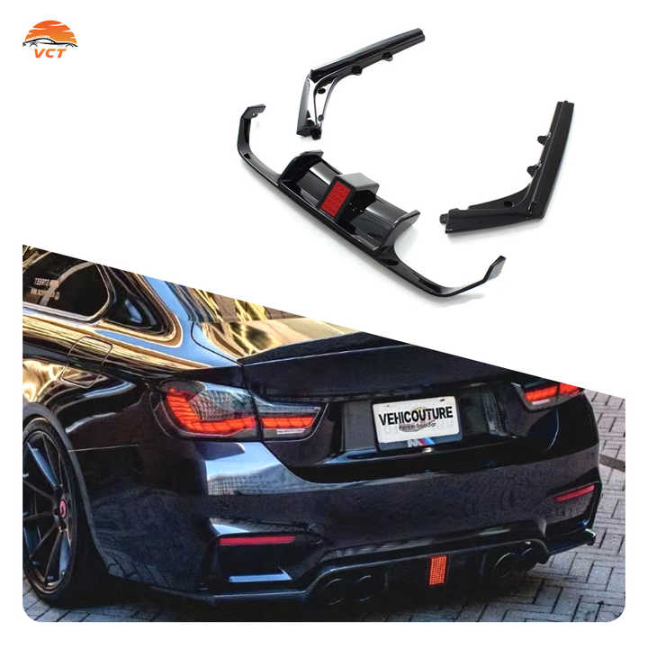 Diffusore paraurti posteriore V Style con LED in PP/ABS per BMW M3 F80 e M4 F82, stampato a iniezione, plug-and-play