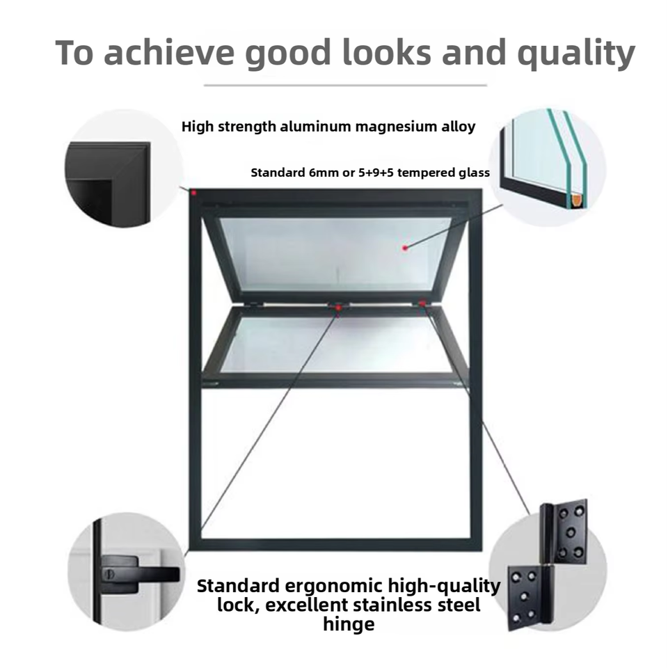Finestra Pieghevole Verticale di Alta Qualità in Alluminio con Vetro Temperato, Finestra di Sicurezza con Griglia Pieghevole a Doppia Anta