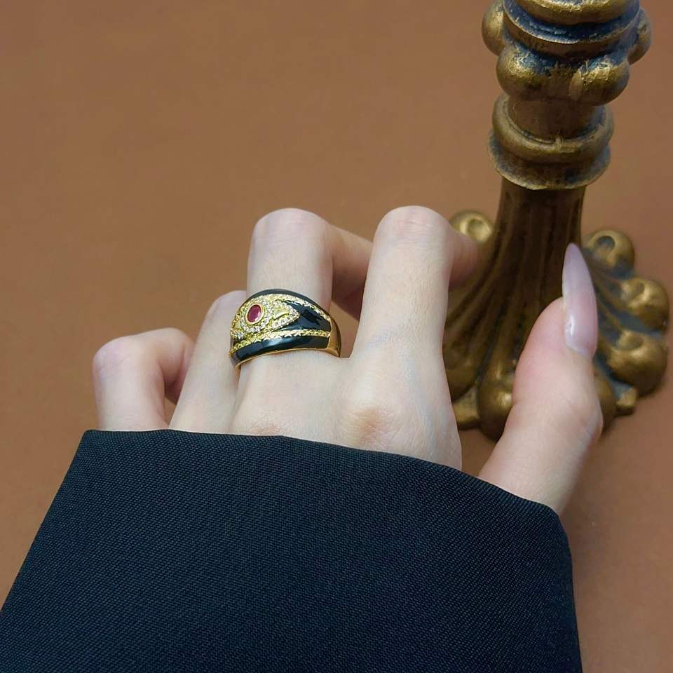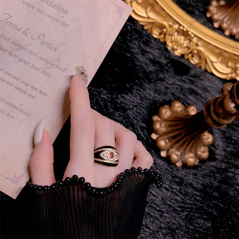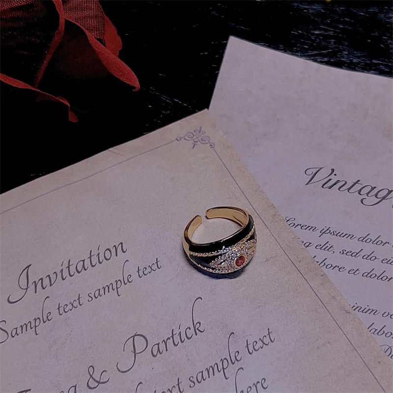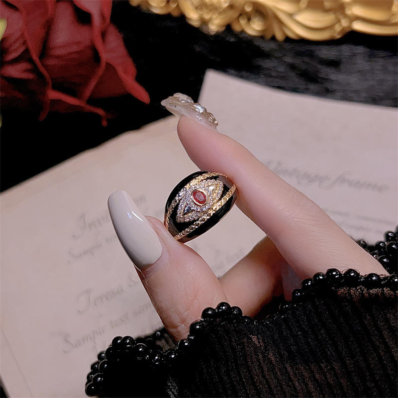 Stile Vintage di alta qualità anello di dio occhio fascia di lusso con smalto nero regolabile in rame dalla fabbrica di gioielli