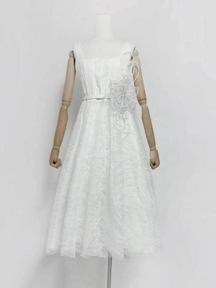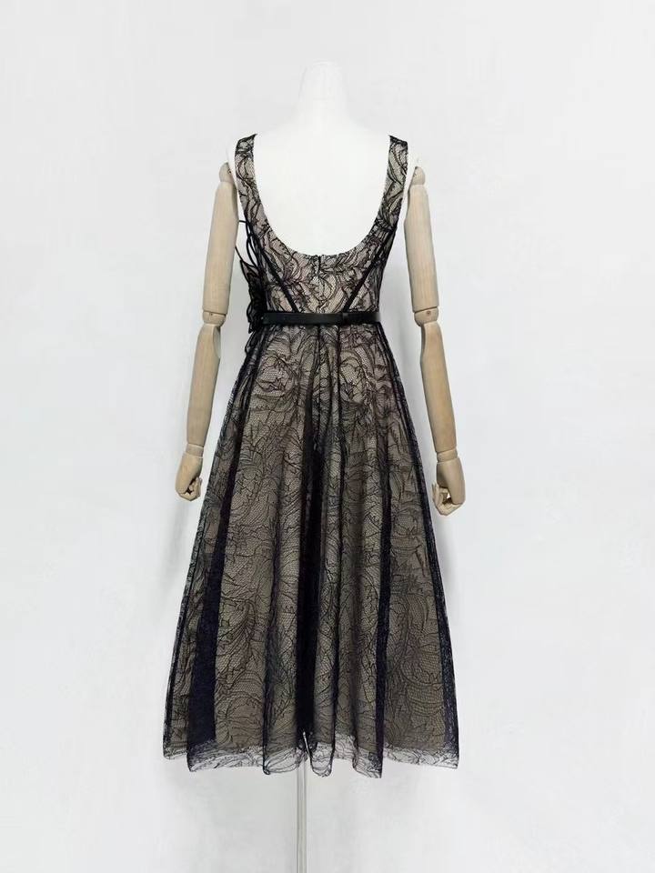 High Quality Vintage Women's Midi Dress with Spaghetti Strap Lace Mesh Flowers Trendy Eco-Friendly Style for Parties New Style
